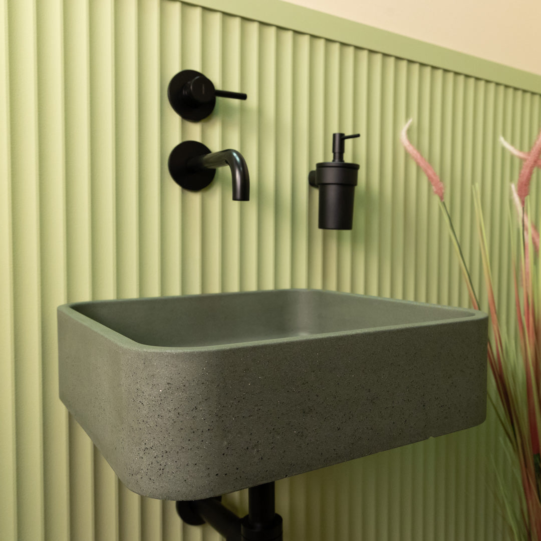 Crafted by hand from premium concrete, the Boxy Basin features a clean square design that adds structure and balance to modern bathrooms. Its smooth matte finish and sharp lines make it a perfect fit for contemporary or industrial interiors. Each sink is unique, with subtle variations in tone and texture that highlight its handmade character. Designed for easy countertop installation, it offers both durability and understated style.