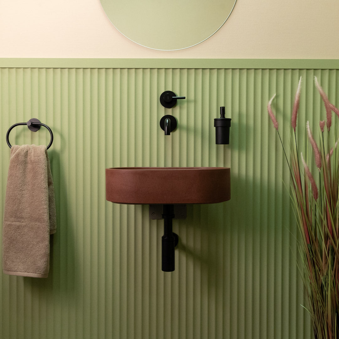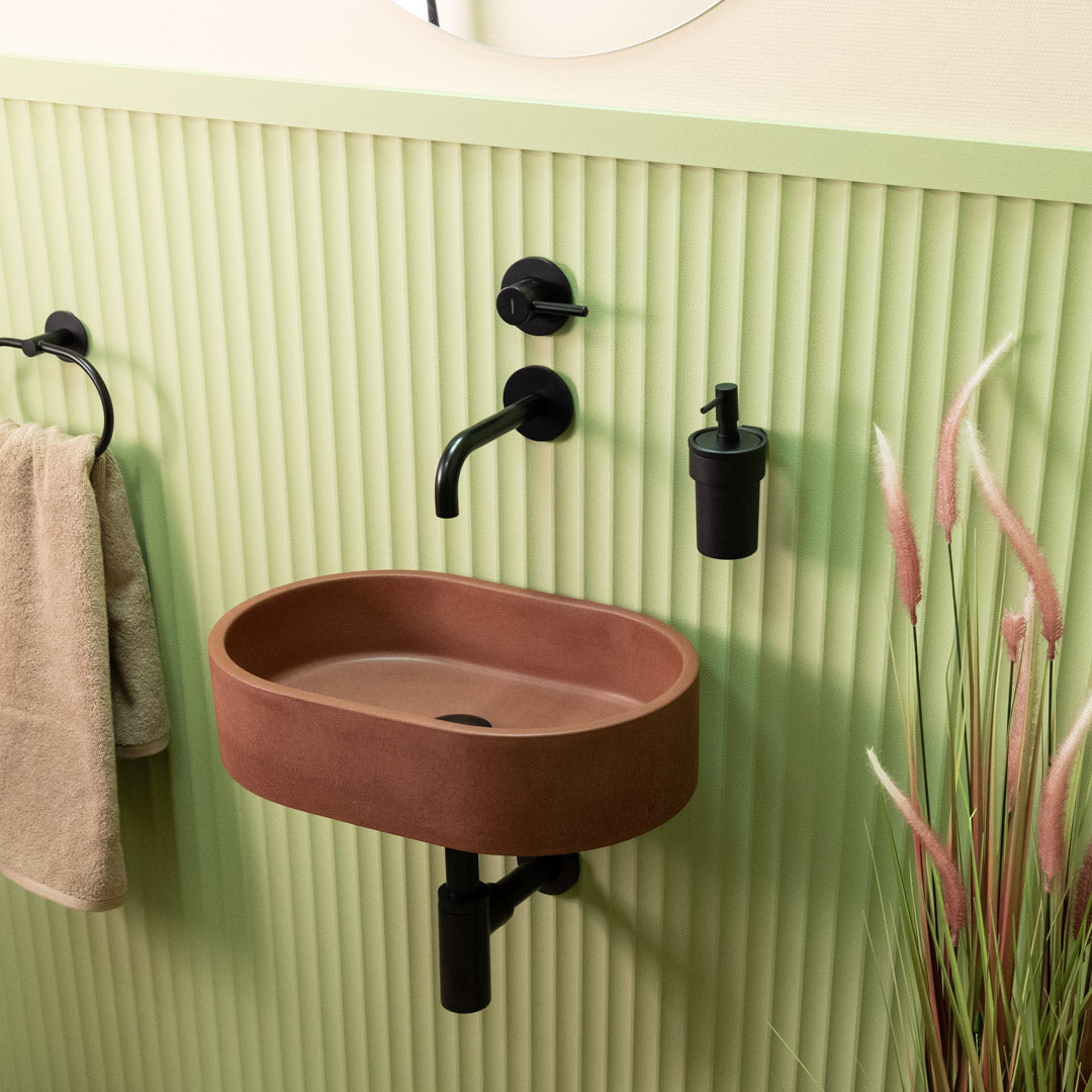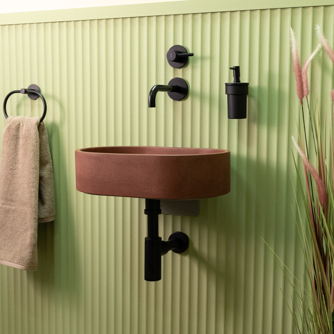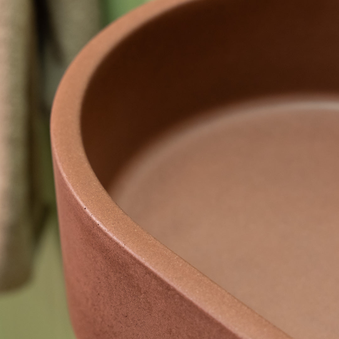 Fabriqué à la main à partir de béton de première qualité, le Mini Halo se caractérise par un design ovale compact qui s'adapte parfaitement aux petits espaces de la salle de bains. Sa finition lisse et mate et ses contours nets apportent une touche de raffinement et de modernité à tout intérieur. Chaque bassin est unique et présente des variations naturelles de ton et de texture. Conçu pour être facilement installé sur un comptoir, il offre à la fois durabilité et équilibre visuel dans un format peu encombrant.