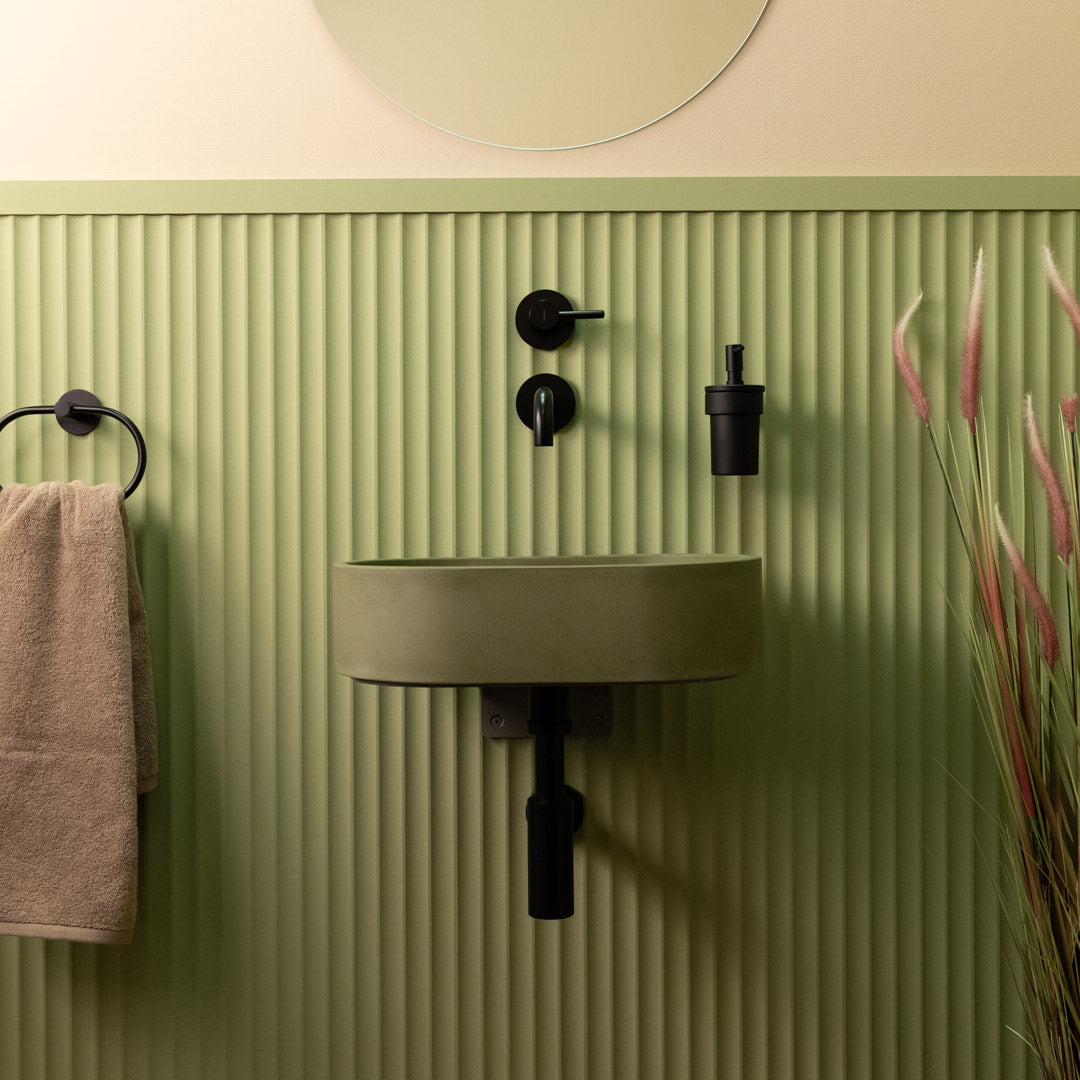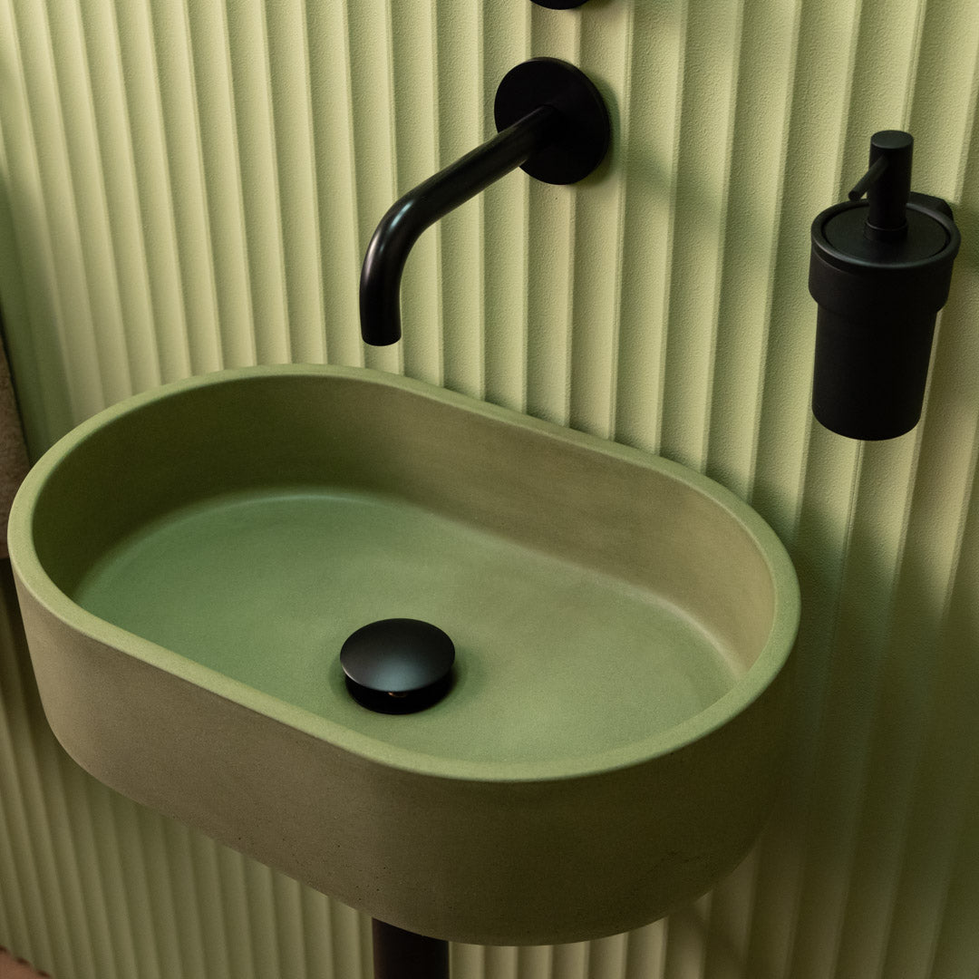 Fabriqué à la main à partir de béton de première qualité, le Mini Halo se caractérise par un design ovale compact qui s'adapte parfaitement aux petits espaces de la salle de bains. Sa finition lisse et mate et ses contours nets apportent une touche de raffinement et de modernité à tout intérieur. Chaque bassin est unique et présente des variations naturelles de ton et de texture. Conçu pour être facilement installé sur un comptoir, il offre à la fois durabilité et équilibre visuel dans un format peu encombrant.